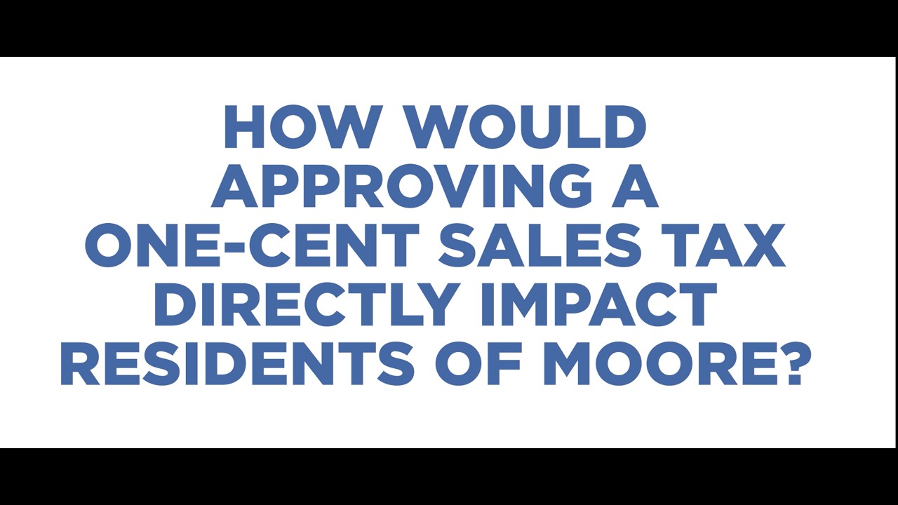 Currently, the City must fund capital projects through general obligation bonds as approved by the voters. Moore City Council seeks to shift the City's funding model which would require increasing the sales tax rate by one cent. This would provide long-term, sustainable funding, help build a “rainy day” fund, and lower the City's portion of the property taxes over time.